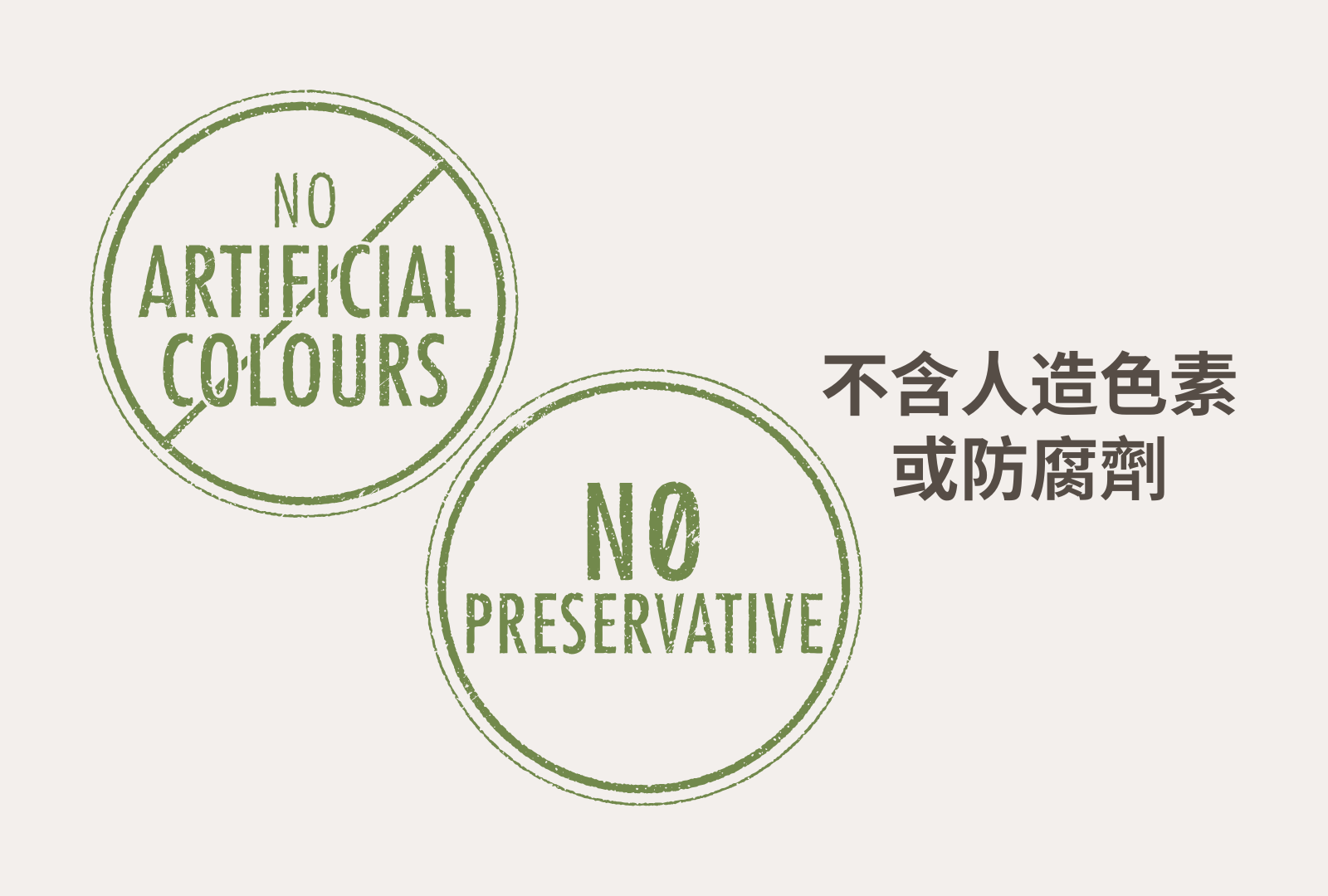 不含人造色素或防腐劑,對寵物身體絕對無害,寵物可以放心食用。