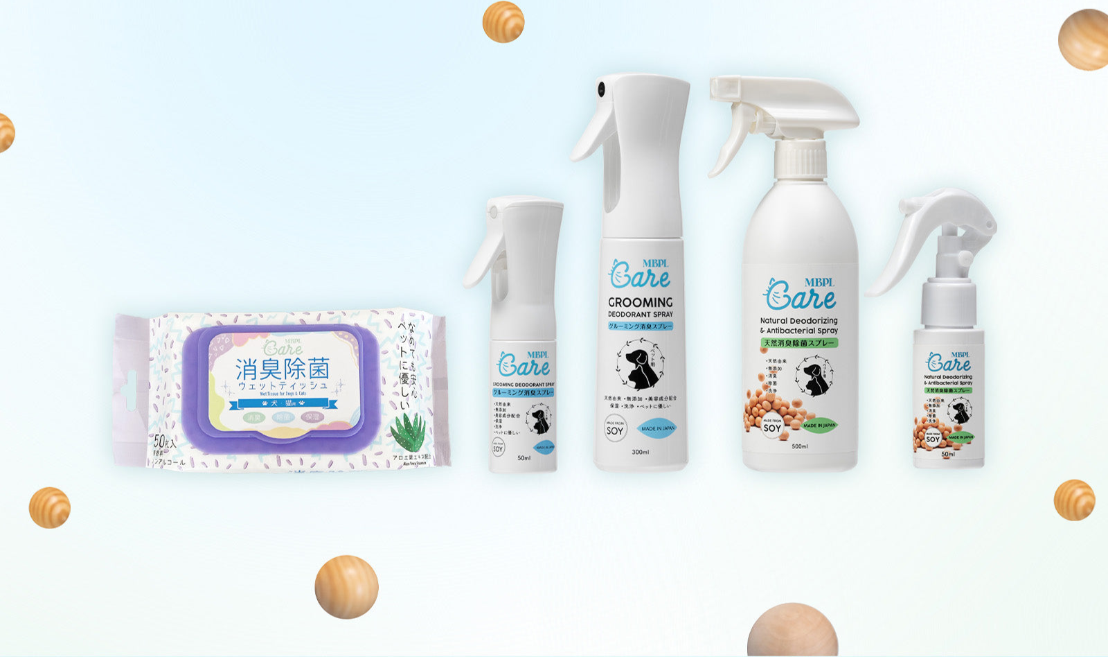 MBPL Care 的產品堅持使用大豆和蘆薈等天然成分,兼具產品性能與安心感。您可以每天安心使用,保持寵物的清潔和健康。