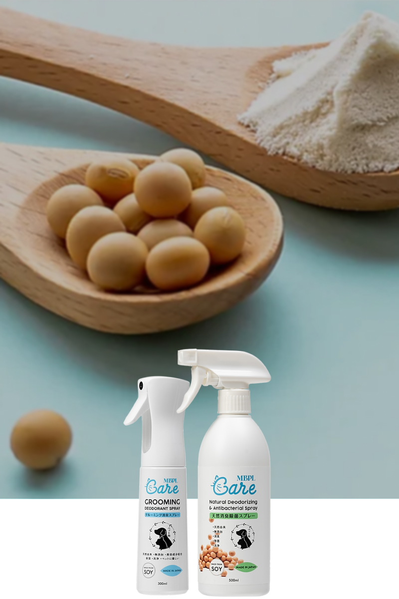 MBPL Care 系列嚴選不使用酒精、香料、防腐劑、色素等添加物,讓所有狗狗和貓咪都能安心使用。此外,雖然產品含有大豆成分,但已去除大豆蛋白,因此無需擔心大豆過敏問題。
