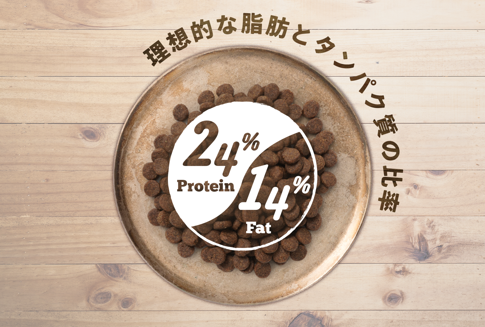 基于黄金比例设计的友善爱犬配方。蛋白质与脂质均衡搭配,易于吸收且有助于消化。